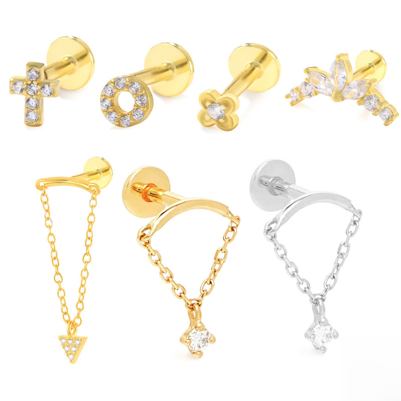 | nameOriginal | S925 sterling silver new round cross tassel diamond flat bottom internal thread piercing ear bone nail ear nail |