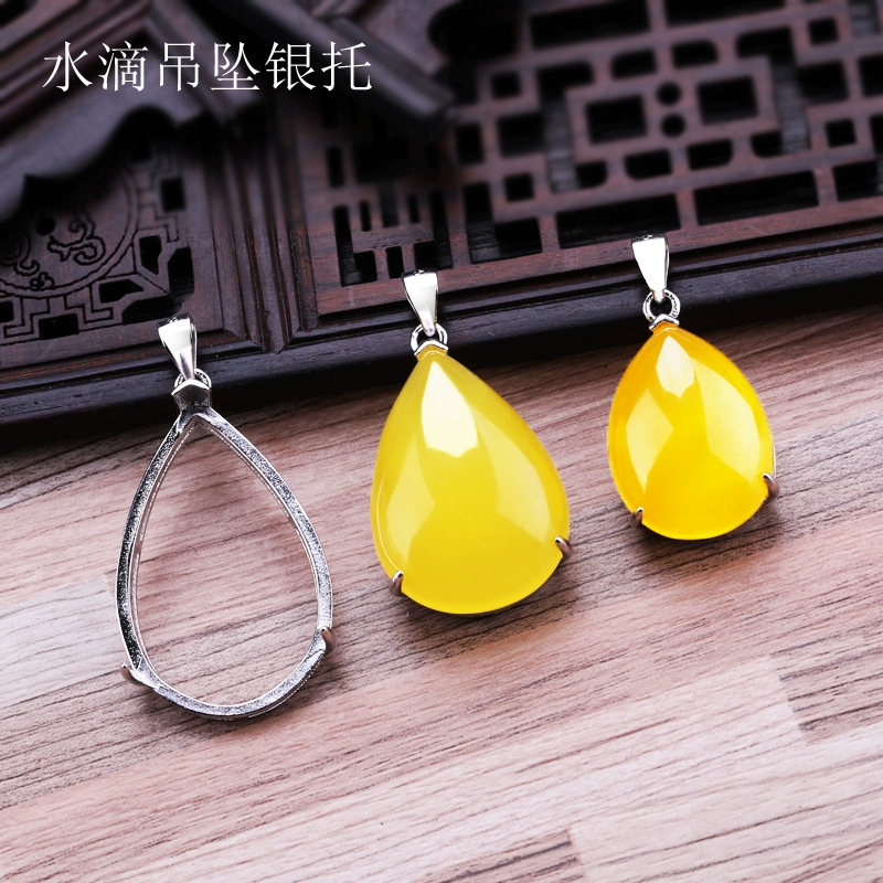 | nameOriginal | s925 sterling silver platinum-plated drop-shaped pendant empty support inlaid with beeswax 15*20 17*24 20*30 pendant support |