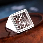 | nameOriginal | S925 sterling silver ring empty setting inlaid with jade beeswax turquoise square men's ring setting 13.8*15.6 14*14 |