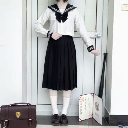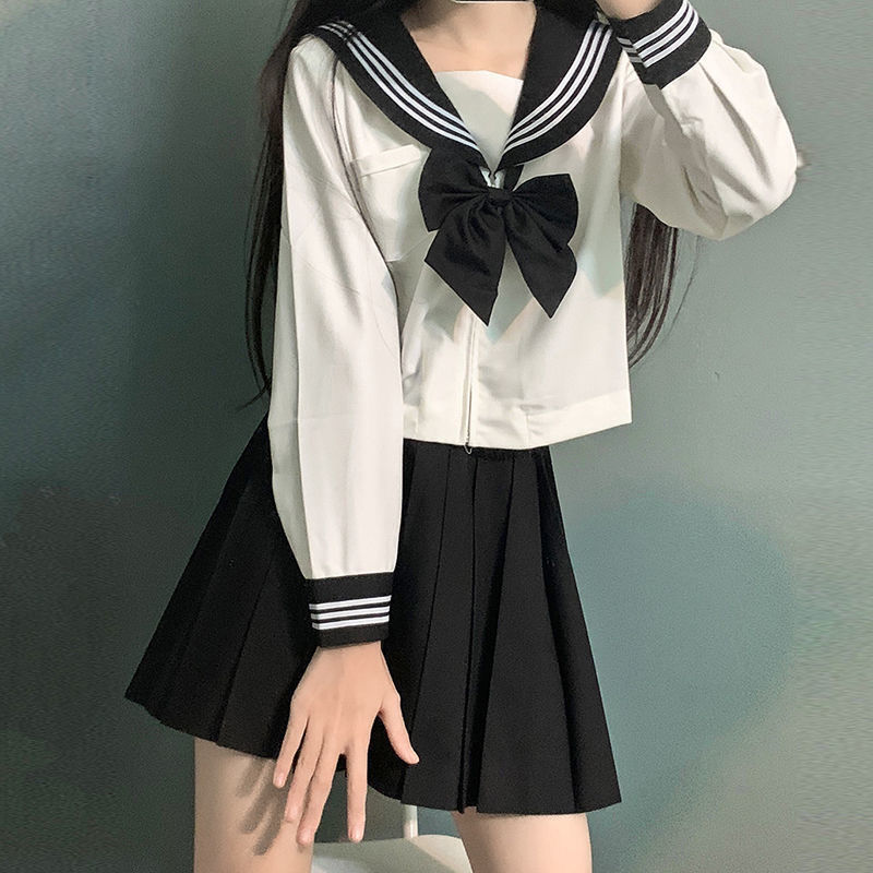 nameOriginal | Sailing Suit Orthodox JK Uniform Women's Suit Basic Black Collar White Three Japanese College Style Pleated Skirt for Primary School Students |