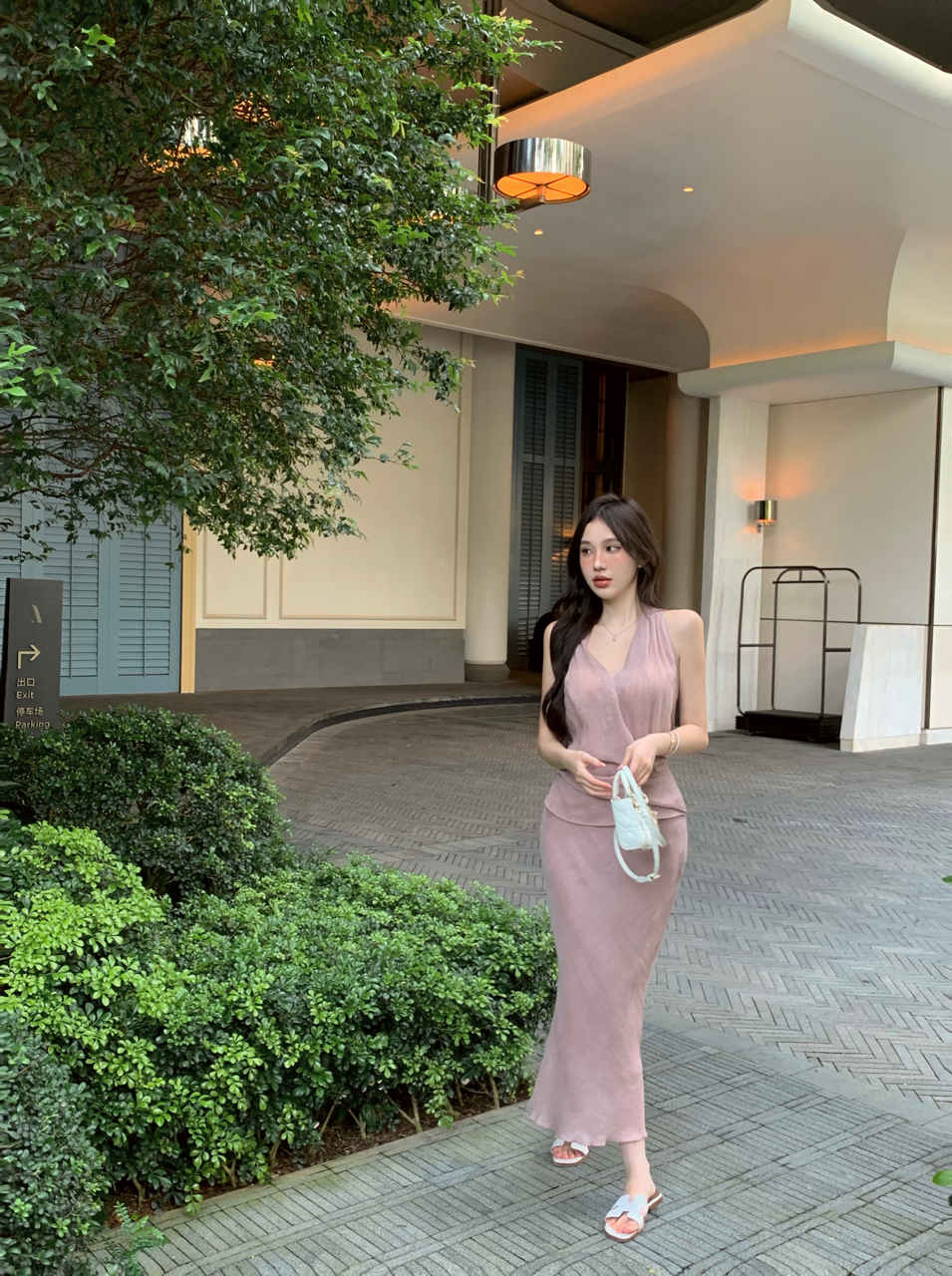 | nameOriginal | Salt style light mature style hip-hugging purple two-piece halter neck set |