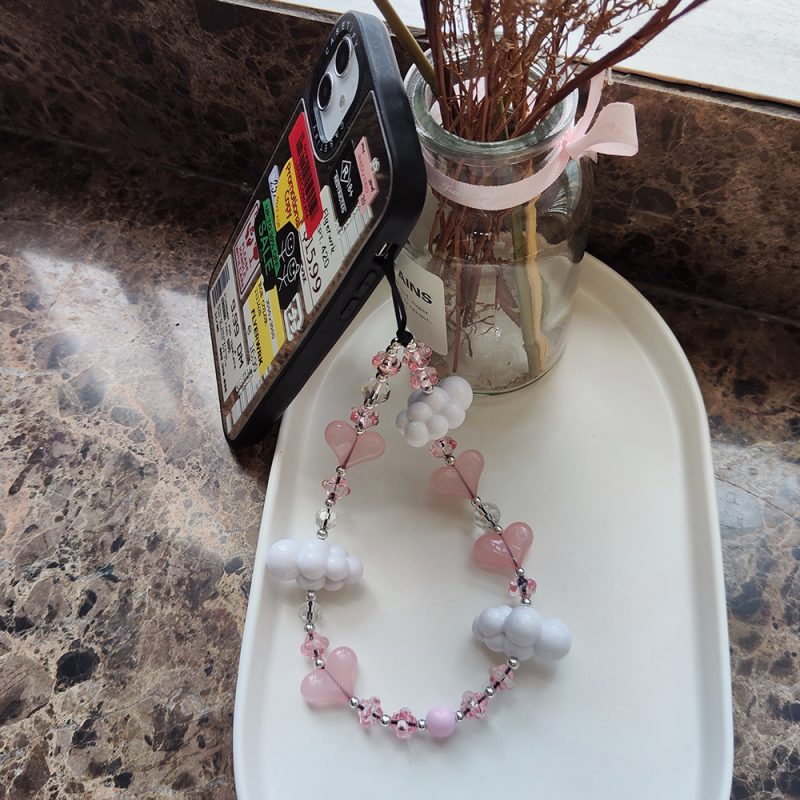 | nameOriginal | Same style white cloud pink heart I mobile phone lanyard portable iPhone applicable all-match love girl mobile phone chain |