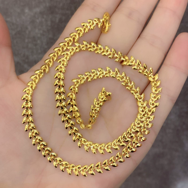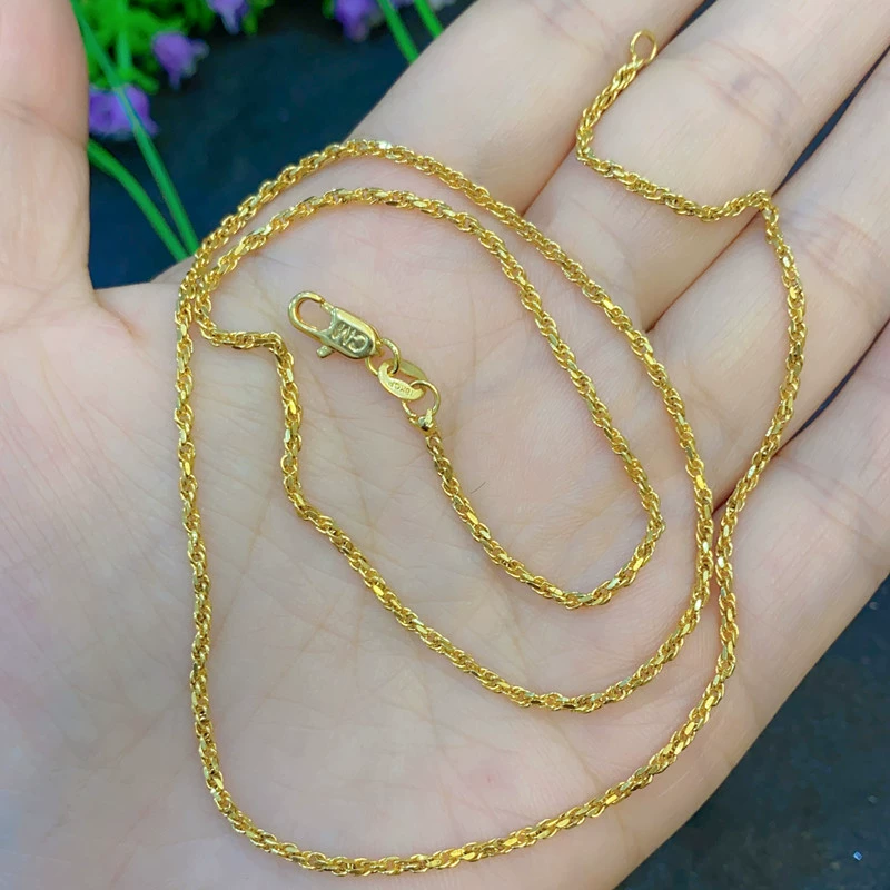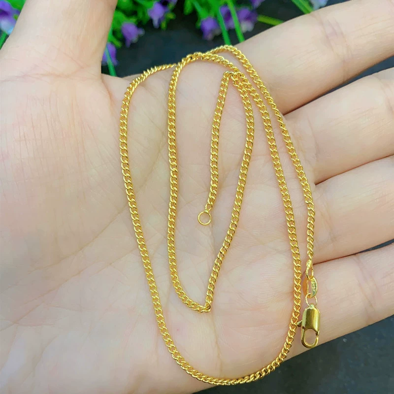 | nameOriginal | Sand gold brass plated real gold women's gold necklace Cuban trend chain plain chain light beads women's clavicle chain O chain Chopard chain thick |