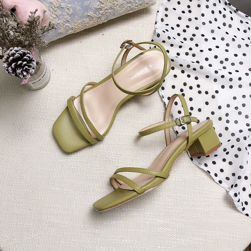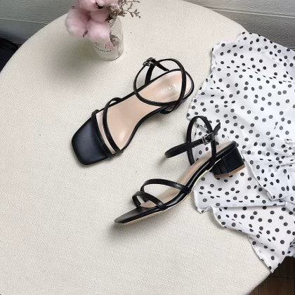 | nameOriginal | Sandals for women, square toe, medium heel, daily comfort, square buckle strap |