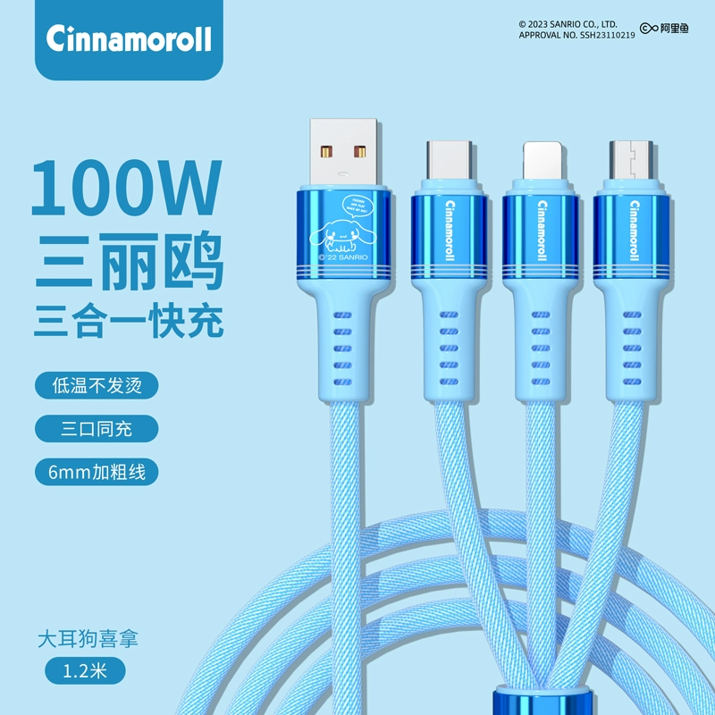 | nameOriginal | Sanrio data cable three-in-one charging cable one to three 100w fast charging cinnamon dog multi-head for Apple Huawei |