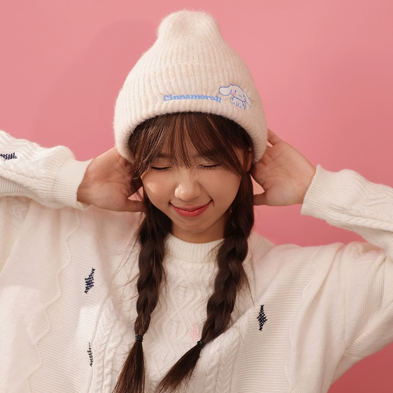 | nameOriginal | Sanrio embroidered knitted hat, cute windproof ear protection, winter warmth, Kuromi, cinnamon dog Melody hat, cute |