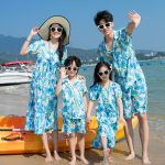 Sanya seaside parent-child outfit foreign-style family of three four mother-daughter holiday beach outfit short-sleeved suit dress