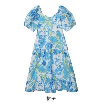 Sanya seaside parent-child outfit foreign-style family of three four mother-daughter holiday beach outfit short-sleeved suit dress