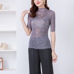 | nameOriginal | Sanzhai pleated top for women 2021 autumn new fashion slim fit slimming Western style half turtleneck transparent bottoming shirt |