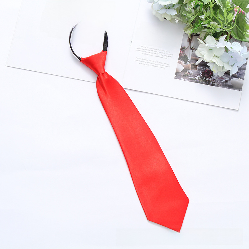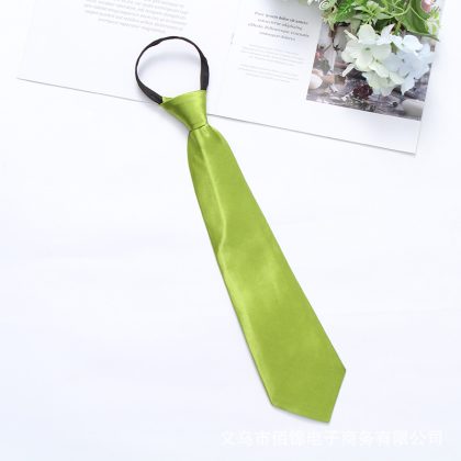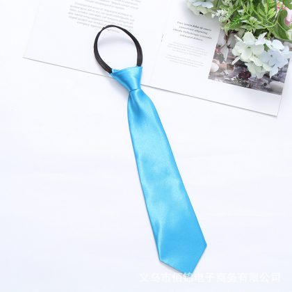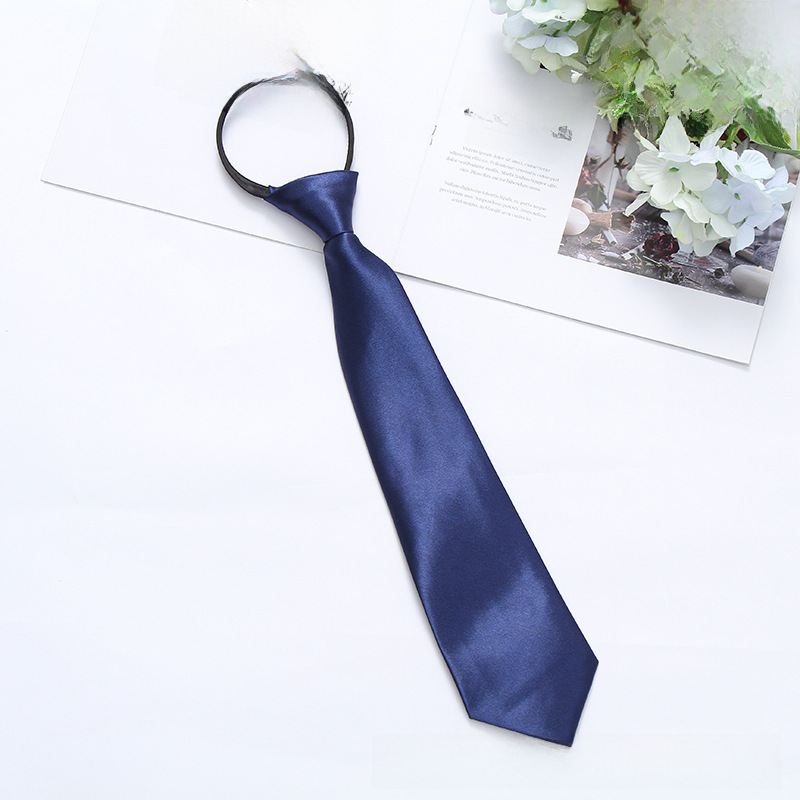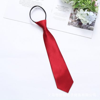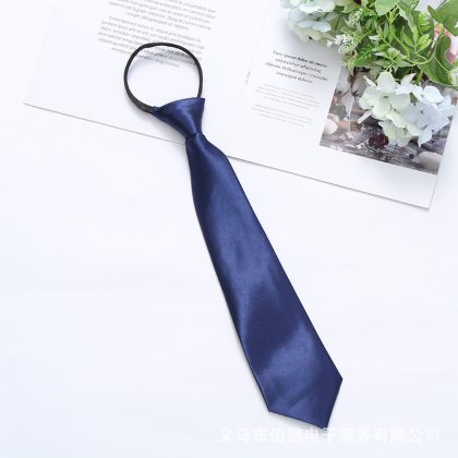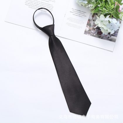 Satin 35cm monochrome zipper easy pull tie smooth lazy casual business college convenient tie