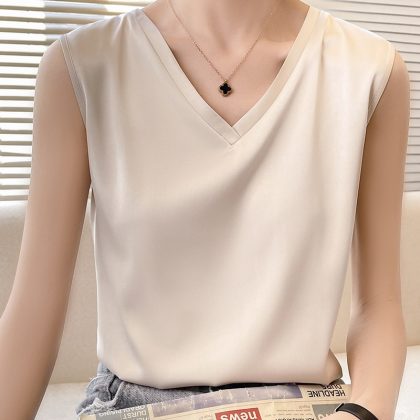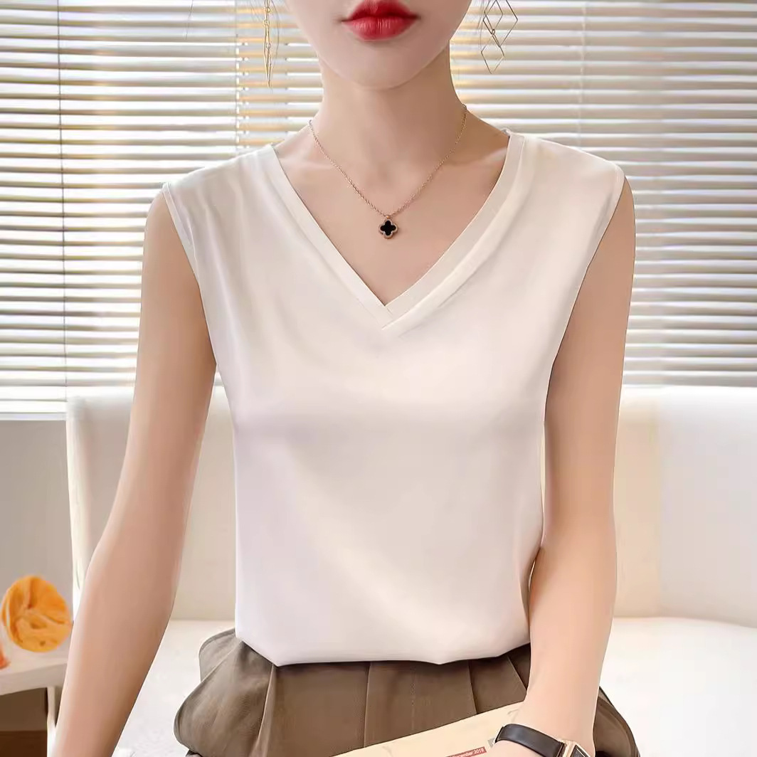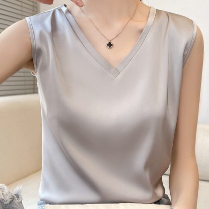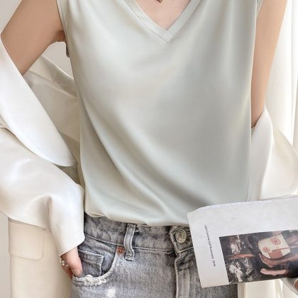 | nameOriginal | Satin Acetic Acid Deep V French Small Camisole Vest 2024 New Women's Outer Wear Sleeveless Top Design Sense Small Vest |