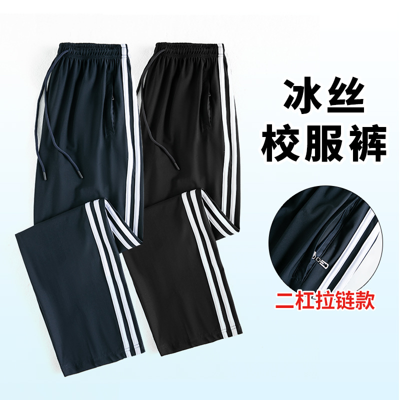 | nameOriginal | School uniform pants summer Thin Ice Silk quick-drying junior high school students Primary School students one bar two bars navy blue school pants |