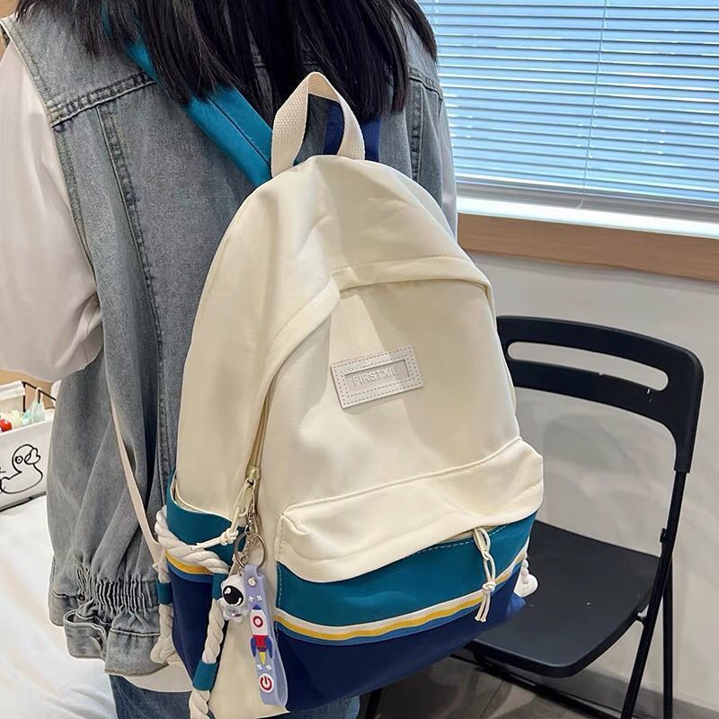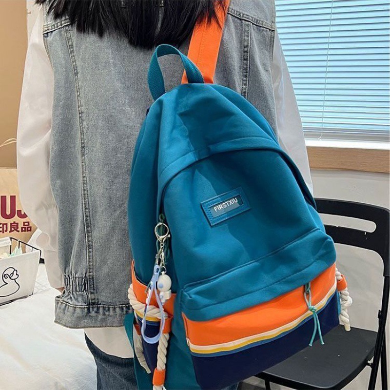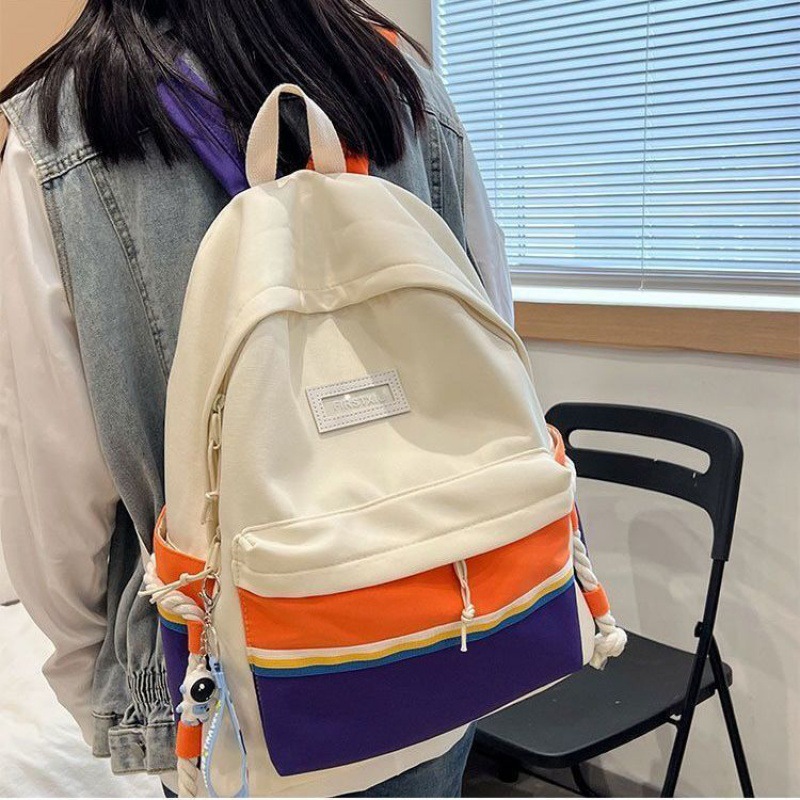 حقيبة مدرسية نسائية 2022 حقيبة مدرسية جديدة ذات سعة كبيرة متفجرة لطلاب المدارس المتوسطة على الطراز الكوري أكتاف ملونة على طراز هاراجوكو شحن مجاني