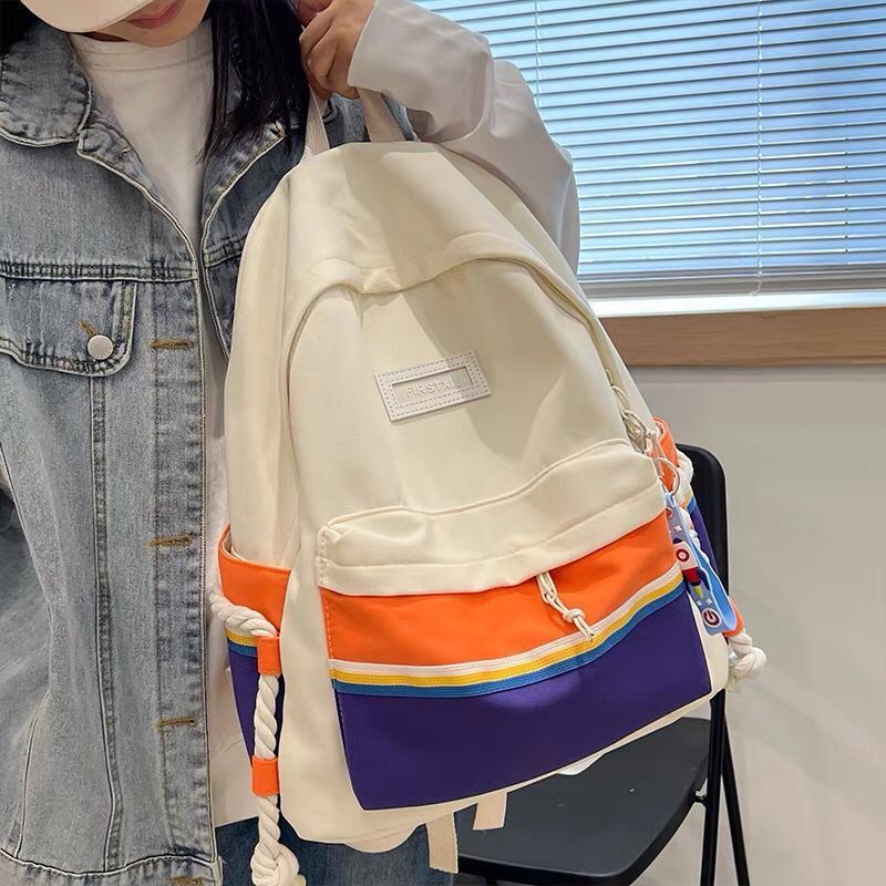 Schoolbag Women's 2022 New Internet Celebrant Explosive Large Capacity Schoolbag for Middle School Students Korean-style Harajuku-style Colored Shoulders Free Shipping