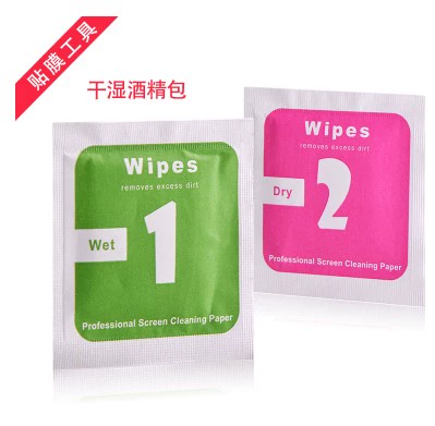 Screen wet and dry dust removal with tempered film cleaning alcohol pack