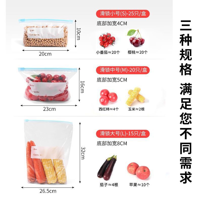 | nameOriginal | Sealed fresh-keeping bag food grade Zipper slide lock widened design thickened refrigerator frozen grains storage bag |