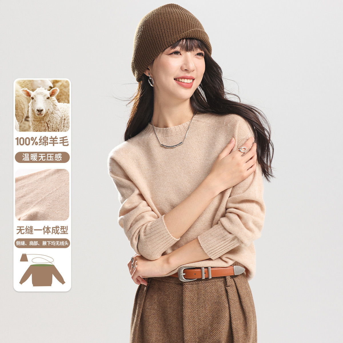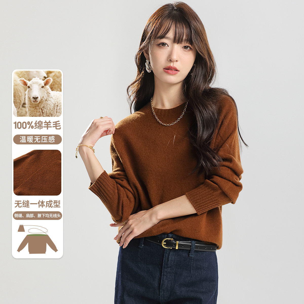 | nameOriginal | Seamless One Full Wool Sweater Women's Round Neck Solid Color Wool Cashmere 100 Pure Wool Sweater Women |