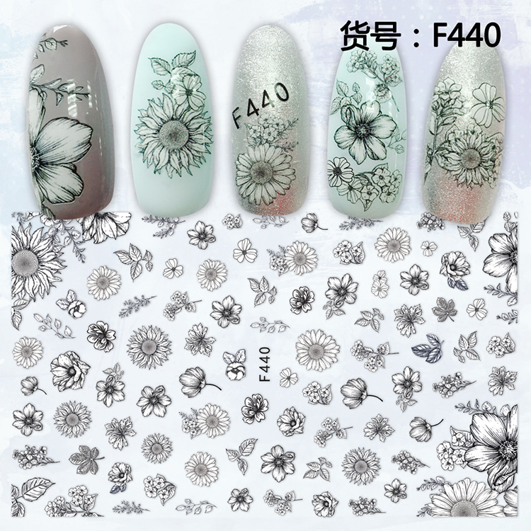 | nameOriginal | Selected black white floret series small flower imitation nail stickers nail decals Yiwu wholesale |