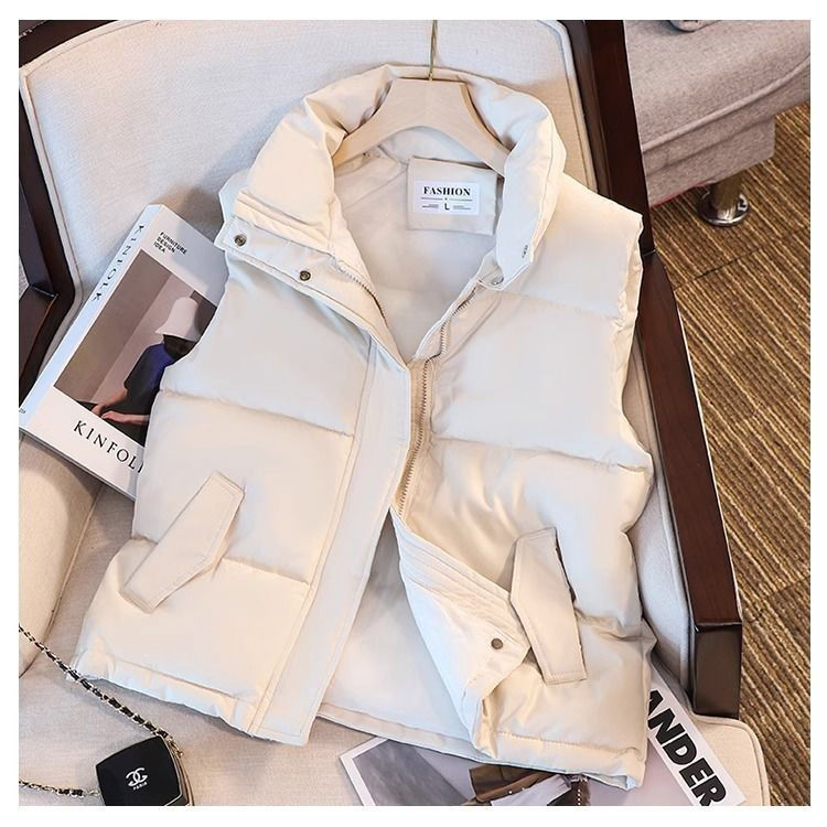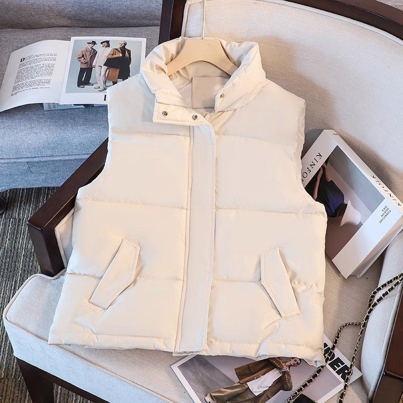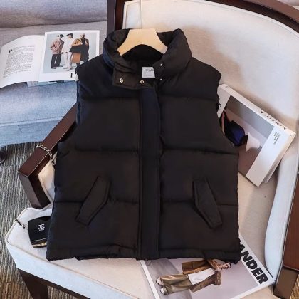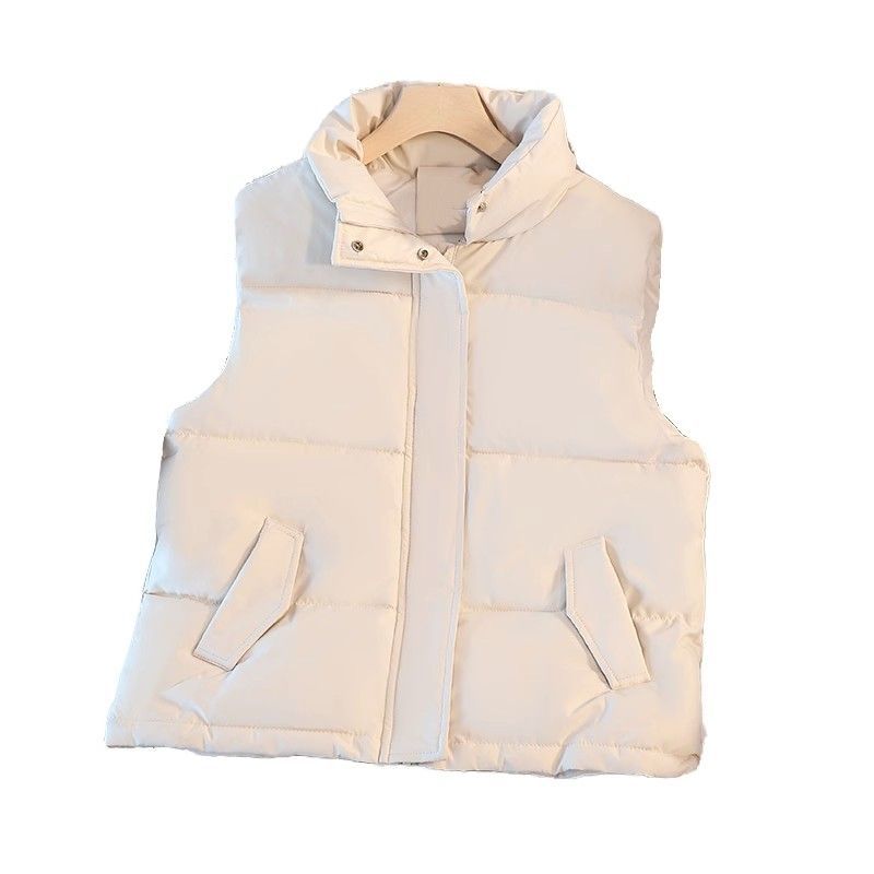 Selected down cotton vest for boys and girls black and white waistcoat stand collar sleeveless vest for middle and big children crossbody pocket disposable coat