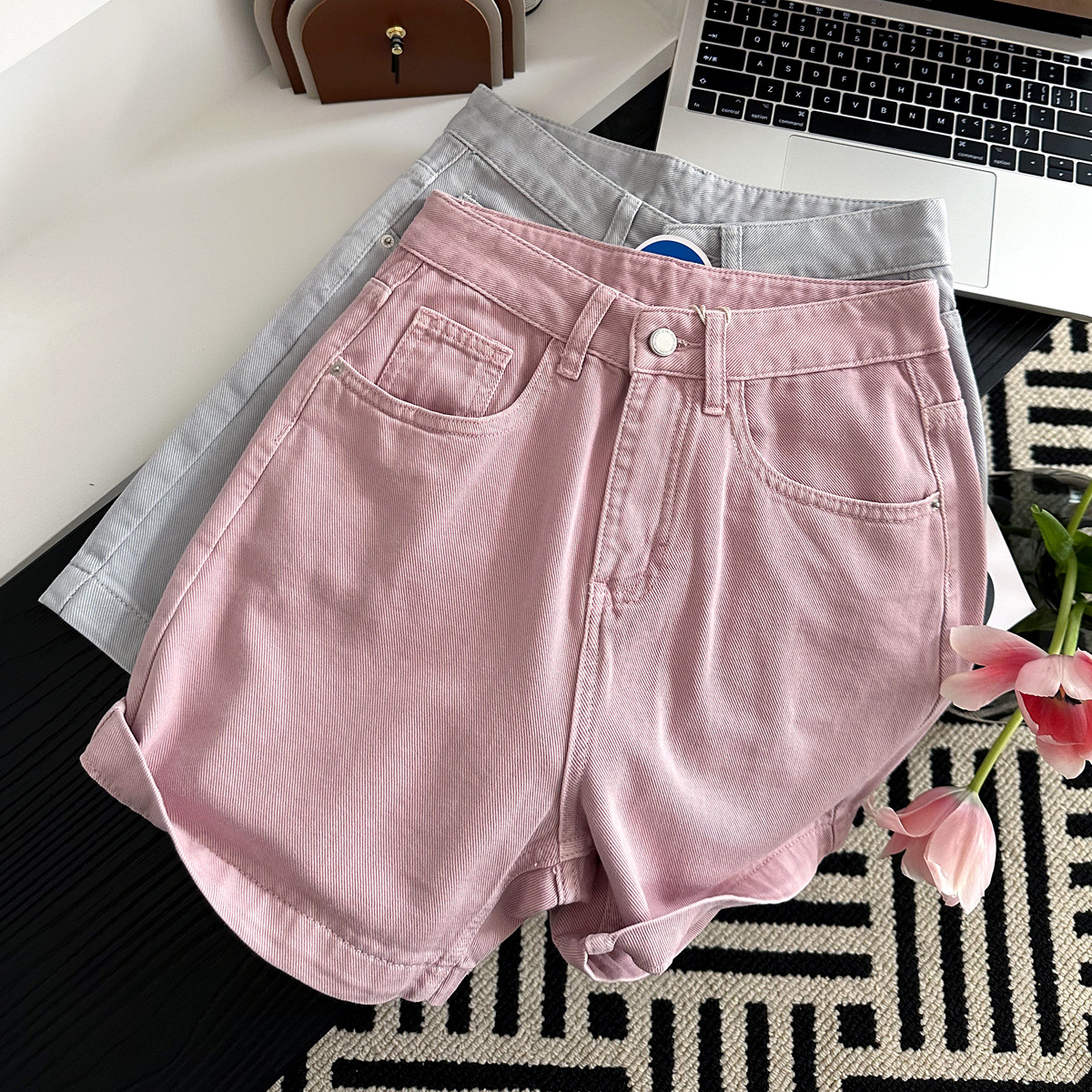 | nameOriginal | Self-retaining Short 2024 Summer Denim Shorts Women's Loose A- line Thin High Waist Slimming Loose Wide-leg Pants |