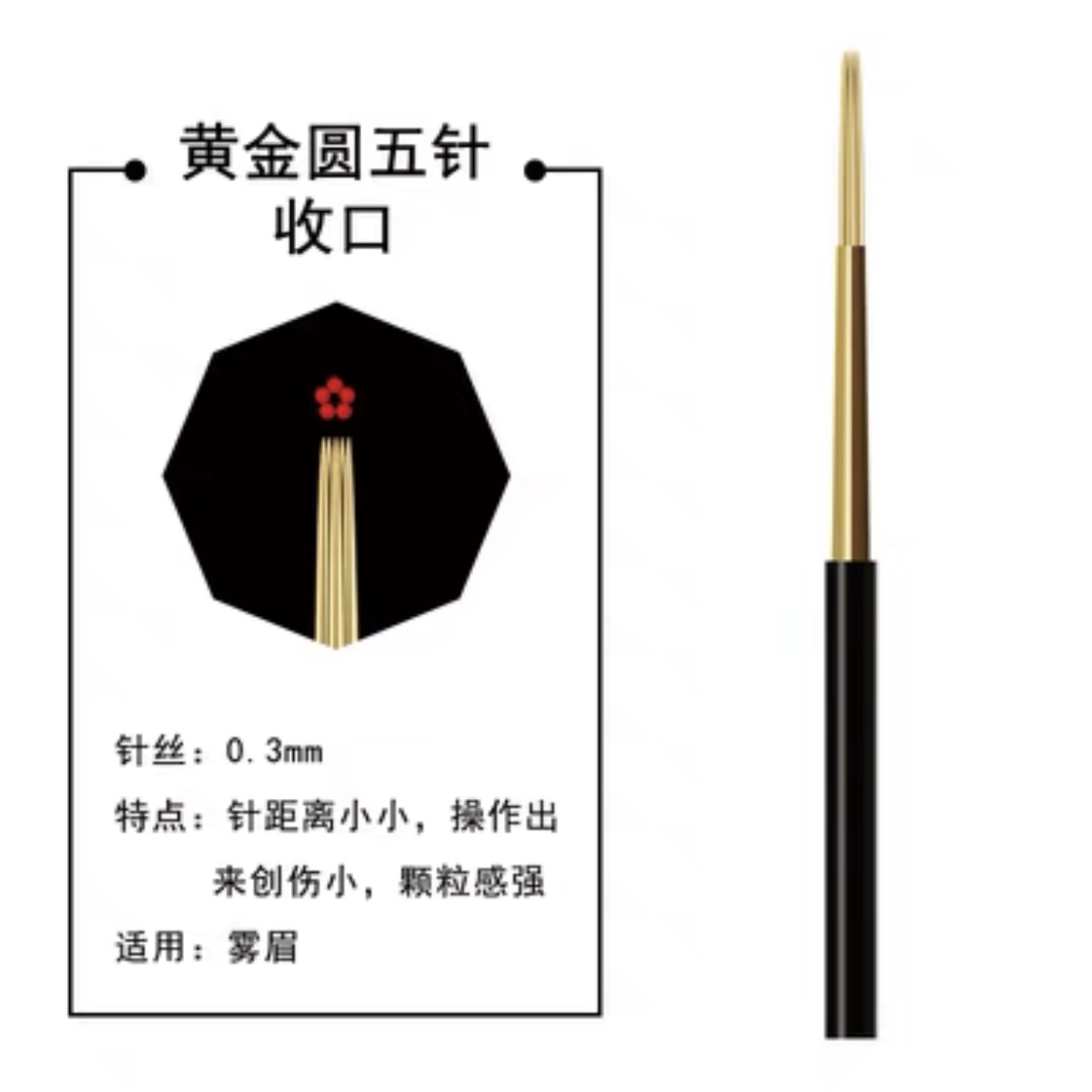 | nameOriginal | Semi-permanent tattoo needle piece, fogging needle, three small golden needles, closing needle, three gold needles, three round needles, five needles, three round needles, five loose needles |