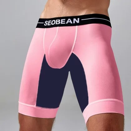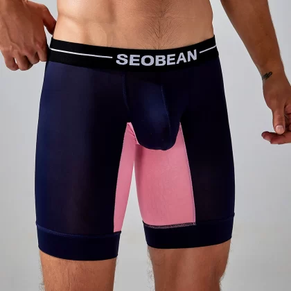 | nameOriginal | seobean trendy style color-blocked long men's boxer briefs ice silk slim sports fitness casual boxer briefs |