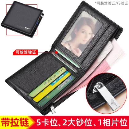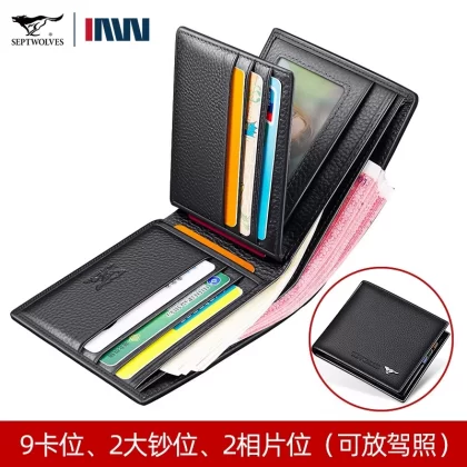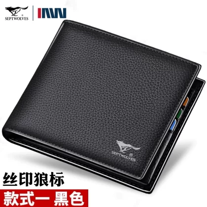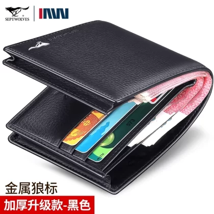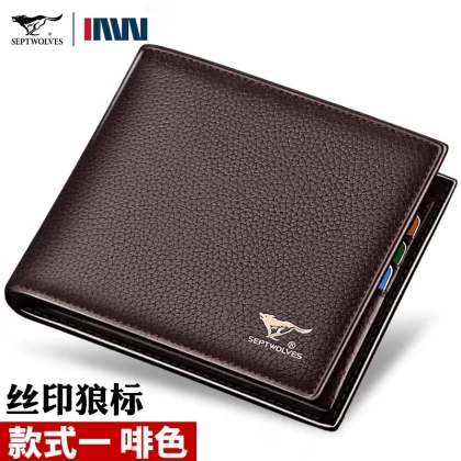 Septwolves Wallet Men's Genuine Leather Short Wallet 2024 New First Layer Cowhide Bag Authentic Leather Wallet Dad Short Clip