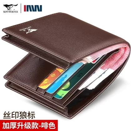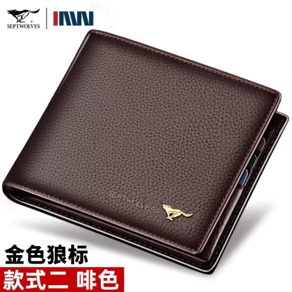 Septwolves Wallet Men’s Highine Leather محفظة قصيرة 2024 جديدة لطبقة البقر أول حقيبة جلد البقر الأصلي محفظة جلدية أبي مقطع قصير