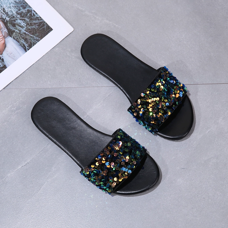 | nameOriginal | Sequined large size fashionable wettable internet celebrity slippers for going out |