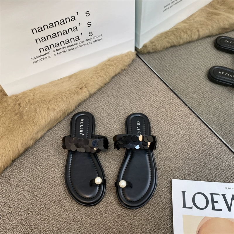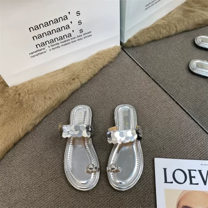 | nameOriginal | Sequined thong flat slippers for women to wear 2024 summer new sandals beach fashion ins fairy cool slippers |