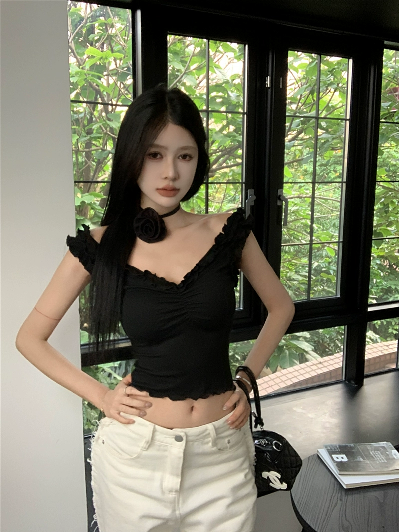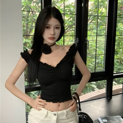 | nameOriginal | Sexy fungus-edged tight flower-decorated V-neck suspender belt |