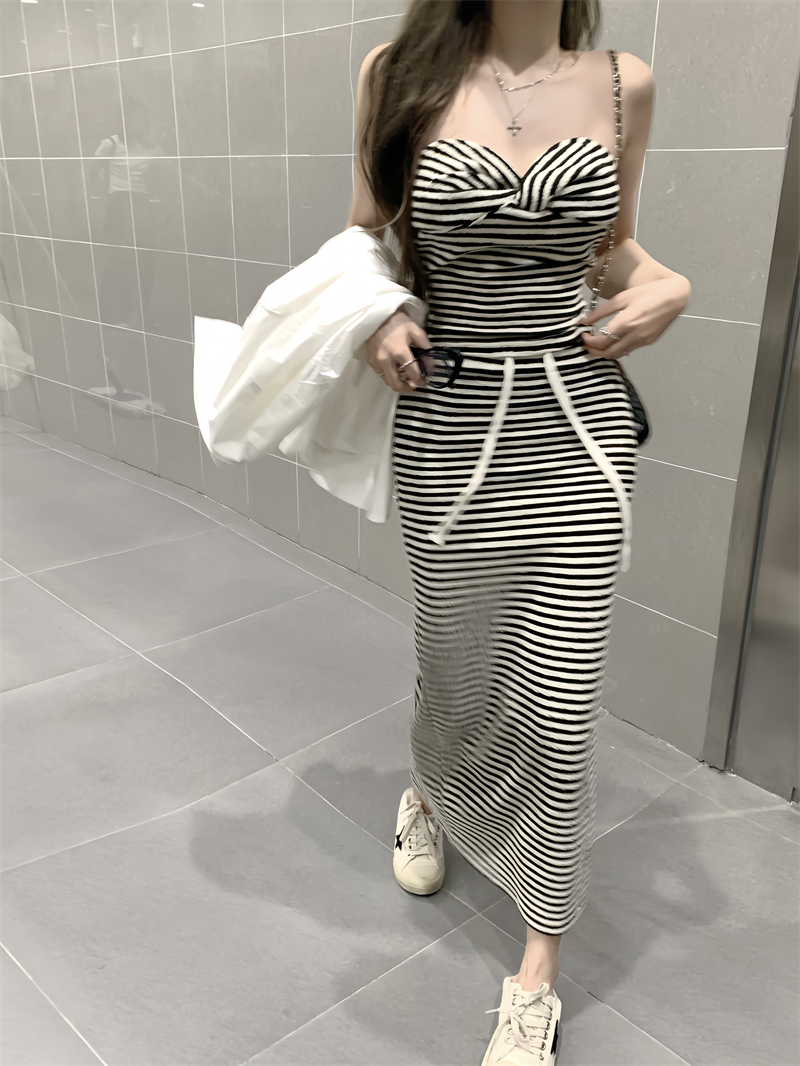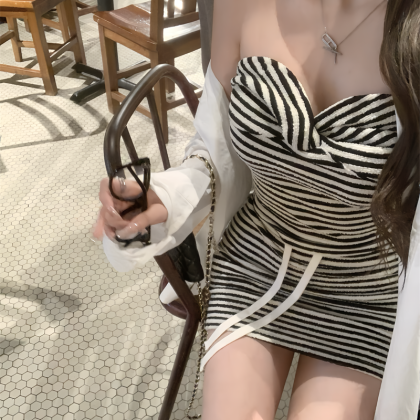 | nameOriginal | Sexy hot girl style fashion suit for women summer 2024 new striped tube top top skirt short skirt two-piece set |