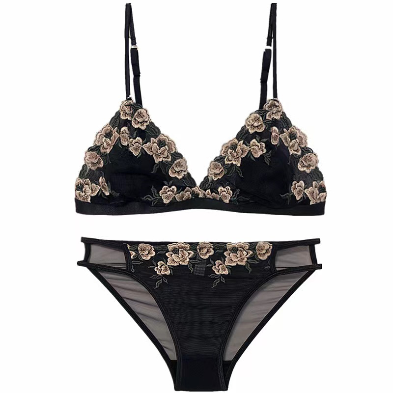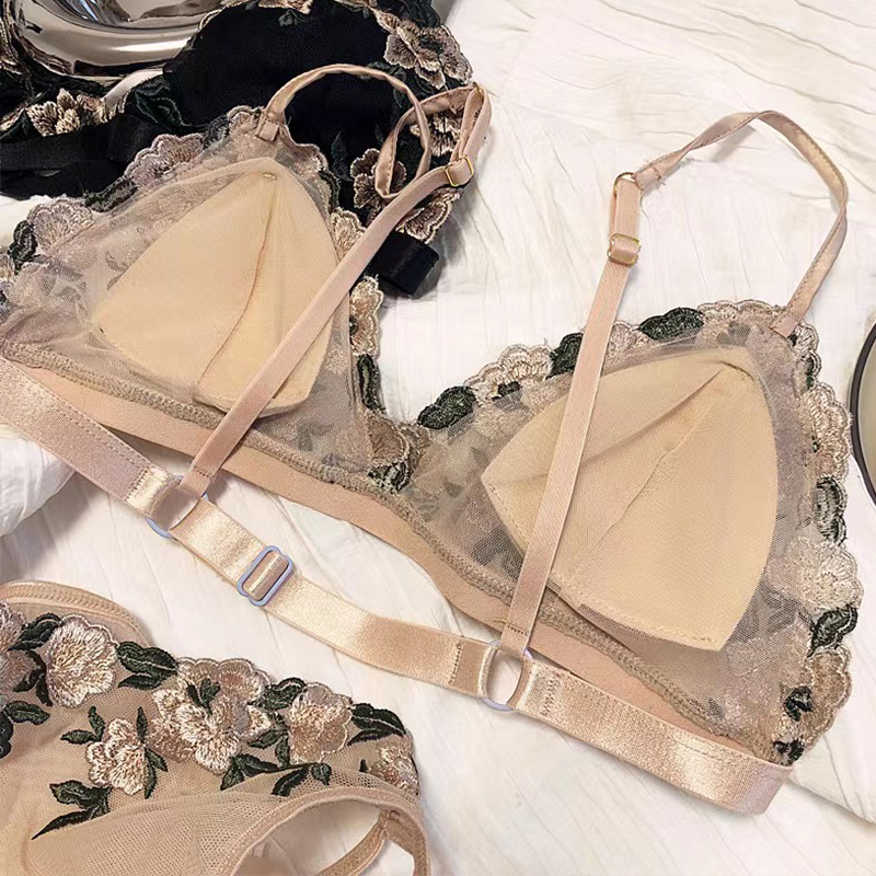 | nameOriginal | Sexy Lace Thin Triangle Cup Underwear French Embroidered Cotton Padded Vest Women's Vintage Bra Set |