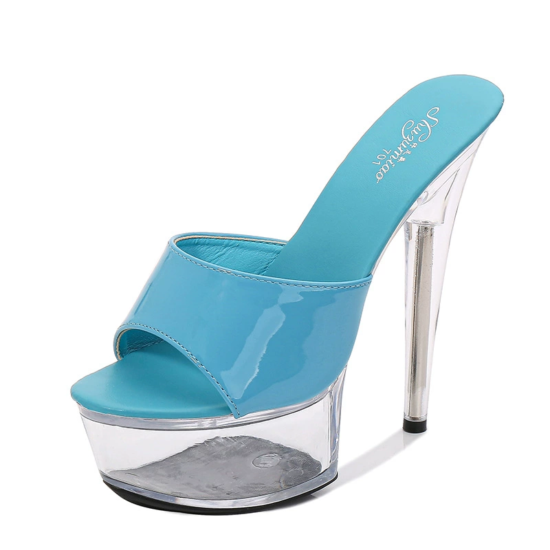| nameOriginal | Sexy nightclub super high heels 15CM stiletto platform slippers transparent crystal sandals women's one-piece slippers are so high |