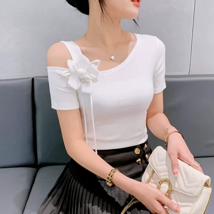 | nameOriginal | Sexy off-shoulder T-shirt women's short-sleeved 2024 summer new style fashionable design top tight-fitting versatile shirt half-sleeved |