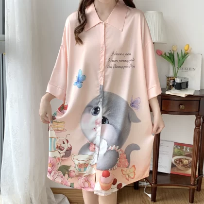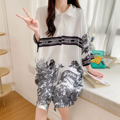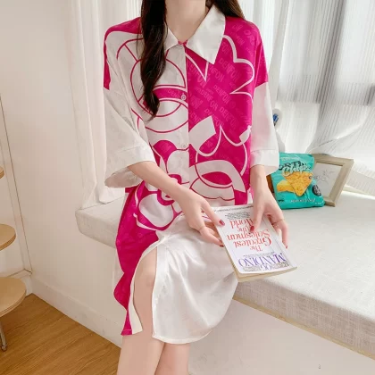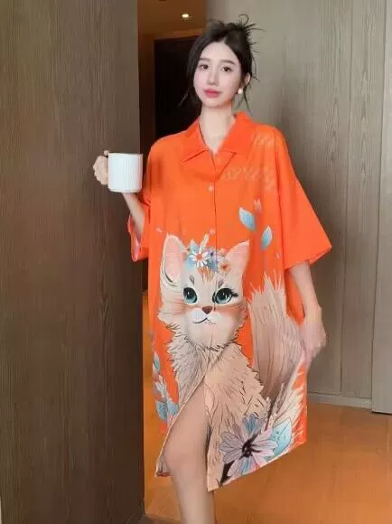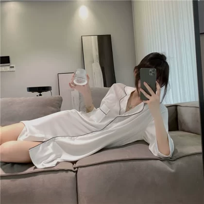 nameOriginal | Sexy pajamas for women, ice and snow silk short-sleeved nightgown, Internet celebrity hot model, high-end summer women's model, 2024 new ice silk |