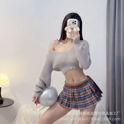 | nameOriginal | Sexy sweater sexy sexy cute campus low collar sweater pleated skirt JK uniform seductive plaid mini skirt |