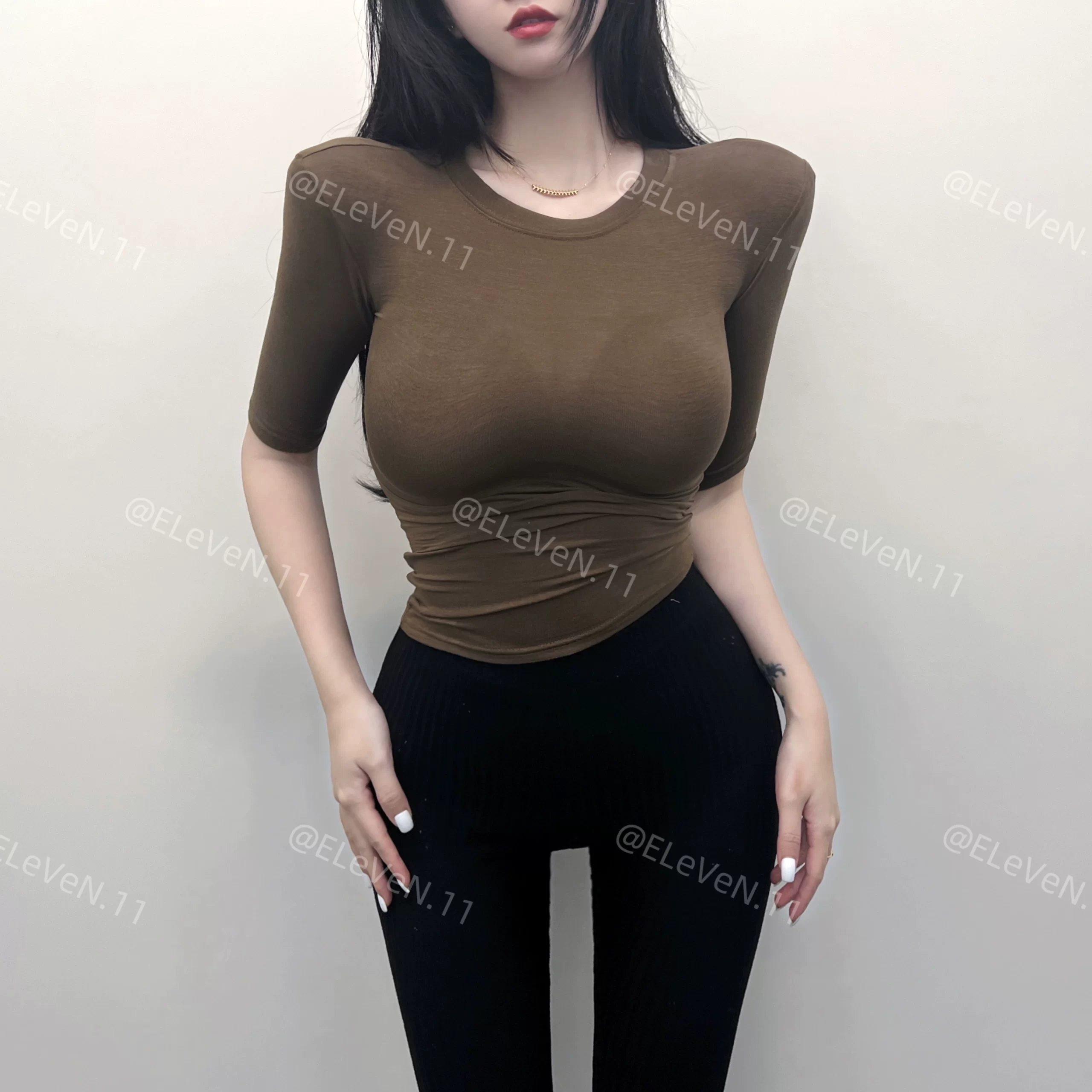 | nameOriginal | Sexy tight-fitting thin slightly see-through three-quarter sleeve top |