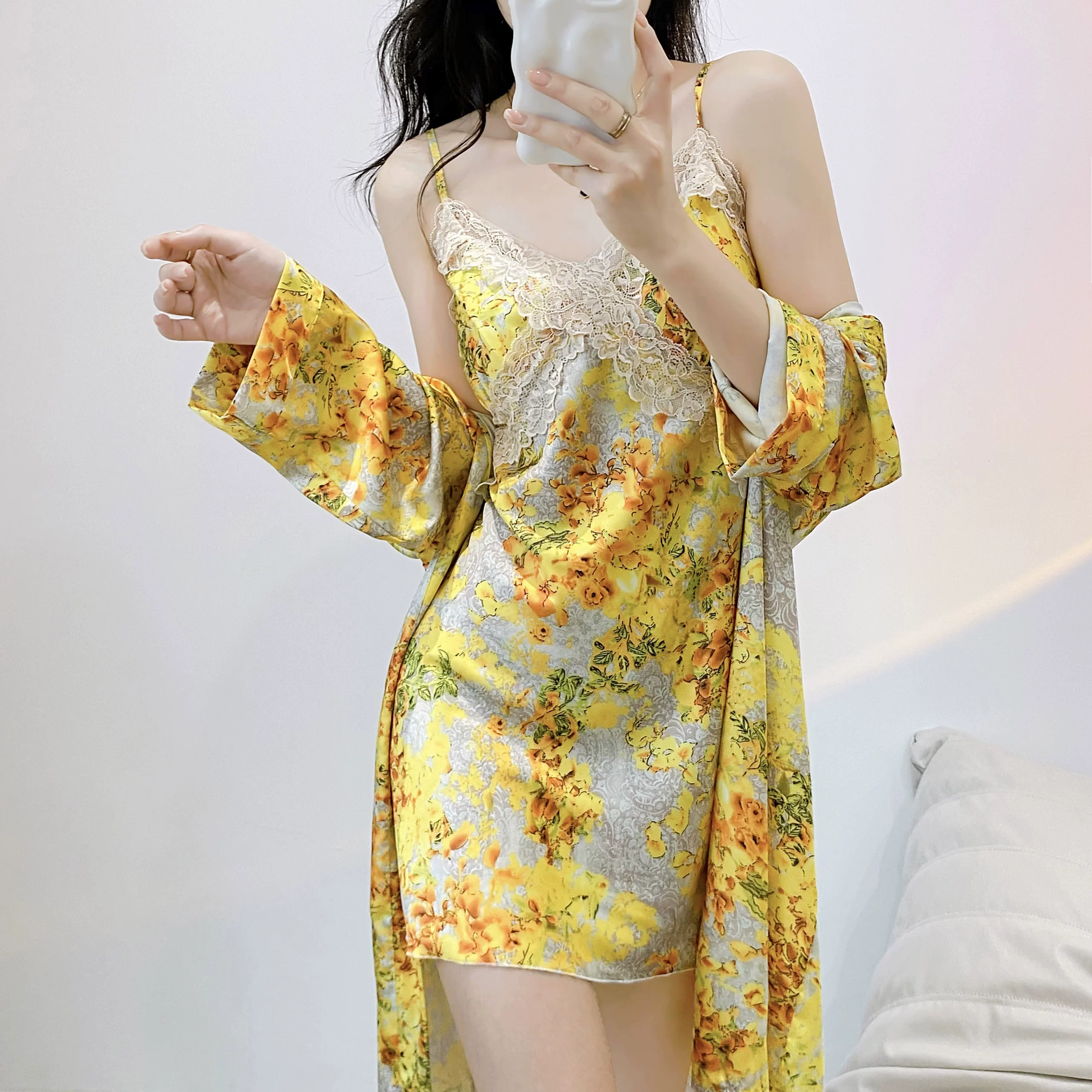 مثير للنساء الصيف الأزهار الجليدية الحرير بيجاما