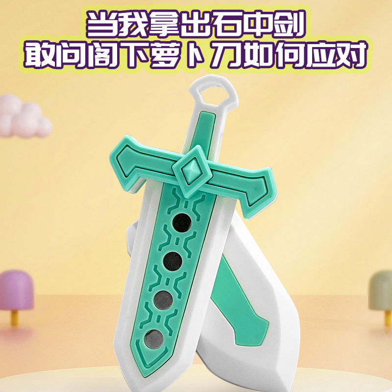 | nameOriginal | Shake the sound of the new push brand stone sword 3 print gravity radish knife ejection sword decompression toy wholesale |