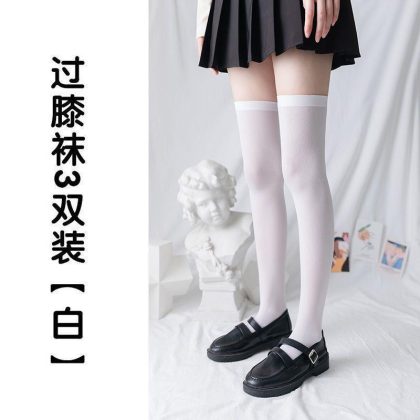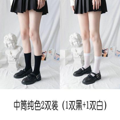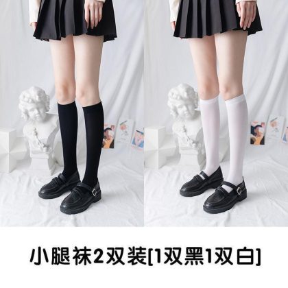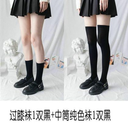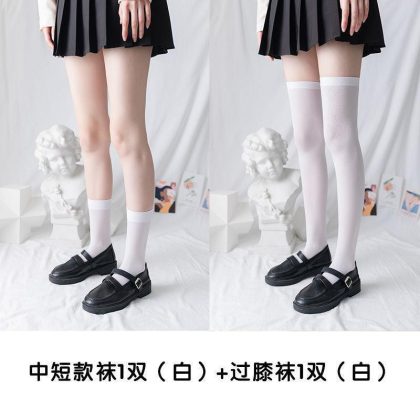 | nameOriginal | Shallow Socks Black and White Jk Socks Women's Mid-length Socks Spring and Summer Slim Leg Over-knee Thin Black Silk High Socks |