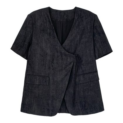 Shangyi Thirteen Lines 2024 Summer New High-end Sense Niche V-neck Suit Short-sleeved Suit Jacket Women's TTS3165