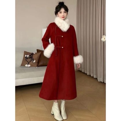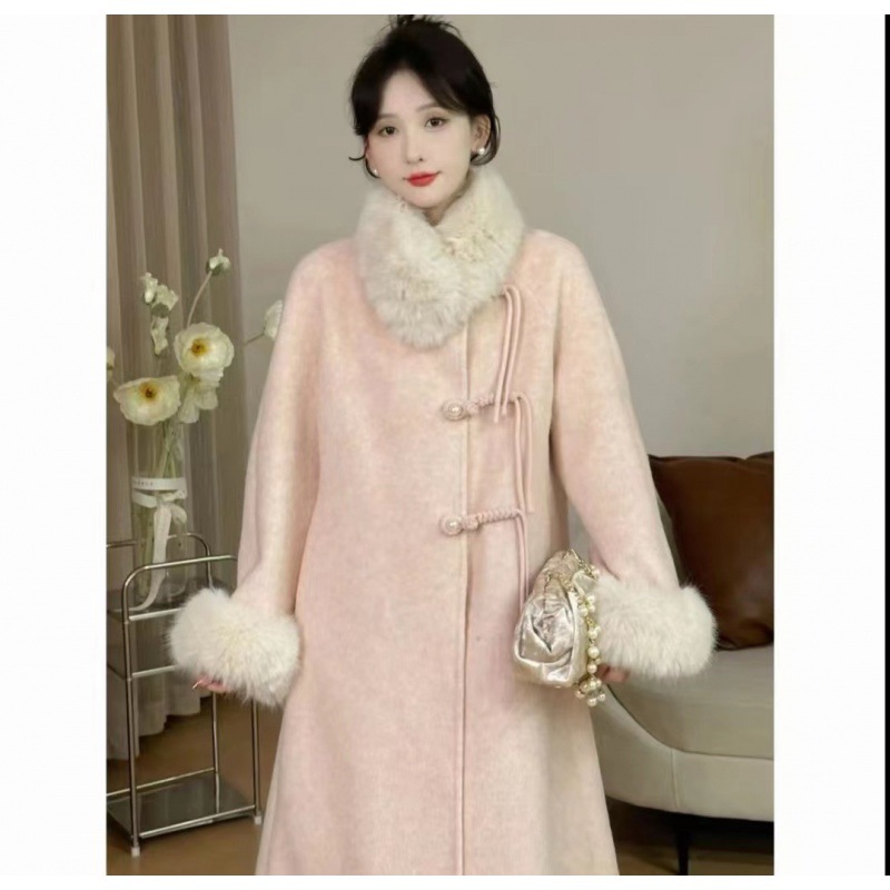 | nameOriginal | SHAOER Lotus peach pink coat women's autumn and winter mid-length buckle quilted coat |