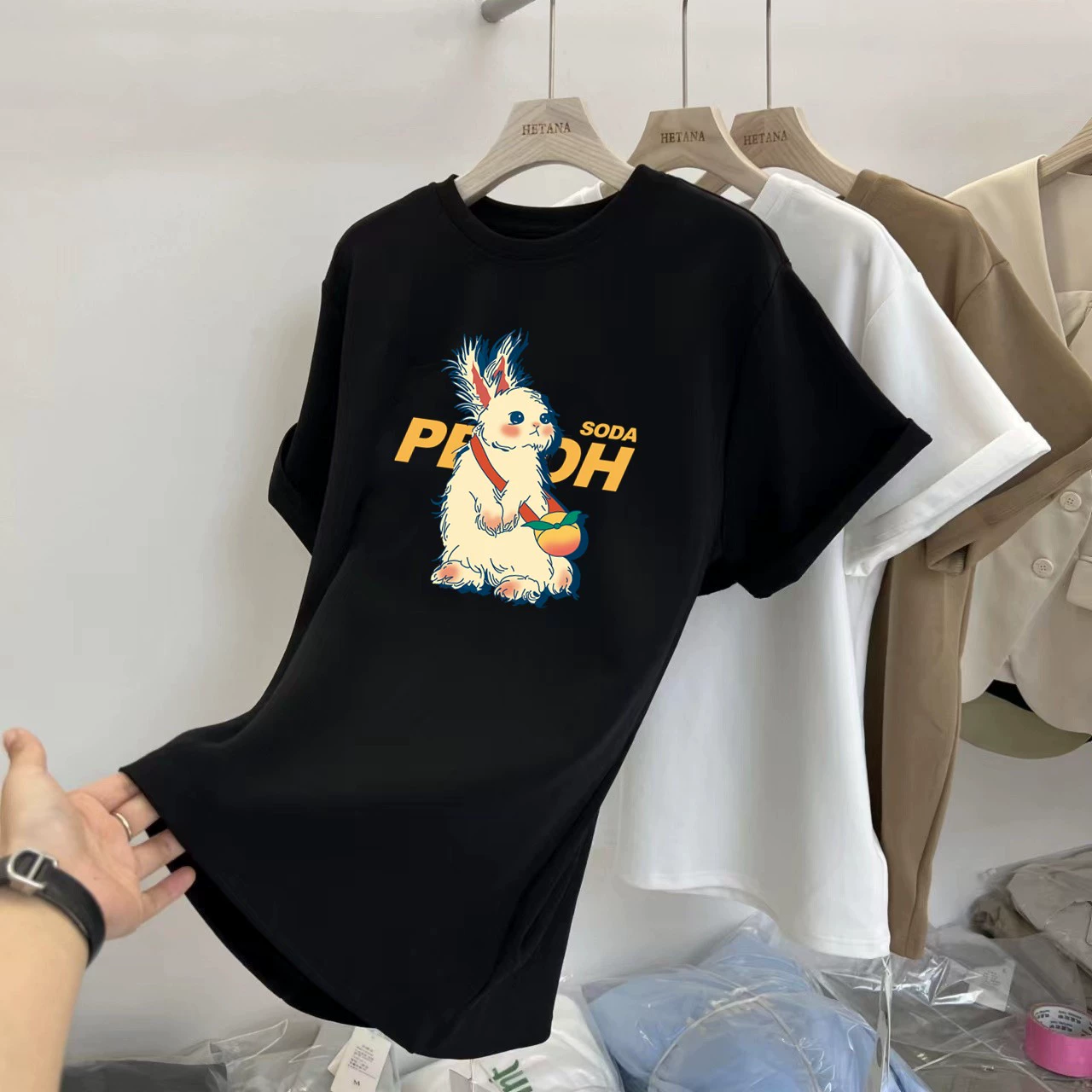 | nameOriginal | Shark pants loose cotton rabbit brown short-sleeved T-shirt |