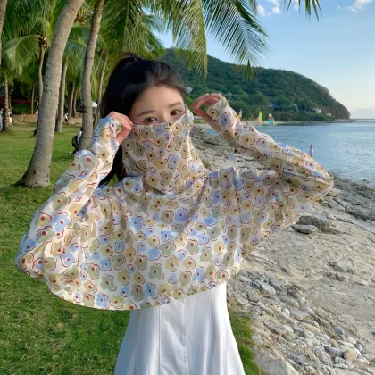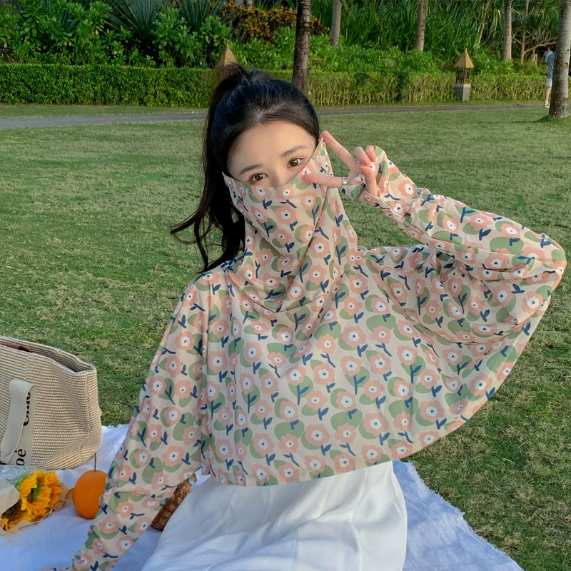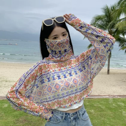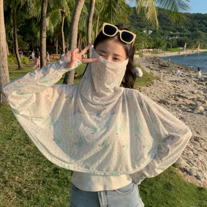 Shawl sun protection mask, ear-hanging mask, neck integrated driving sun protection clothing with sleeves, summer thin sun protection sleeves and raglan