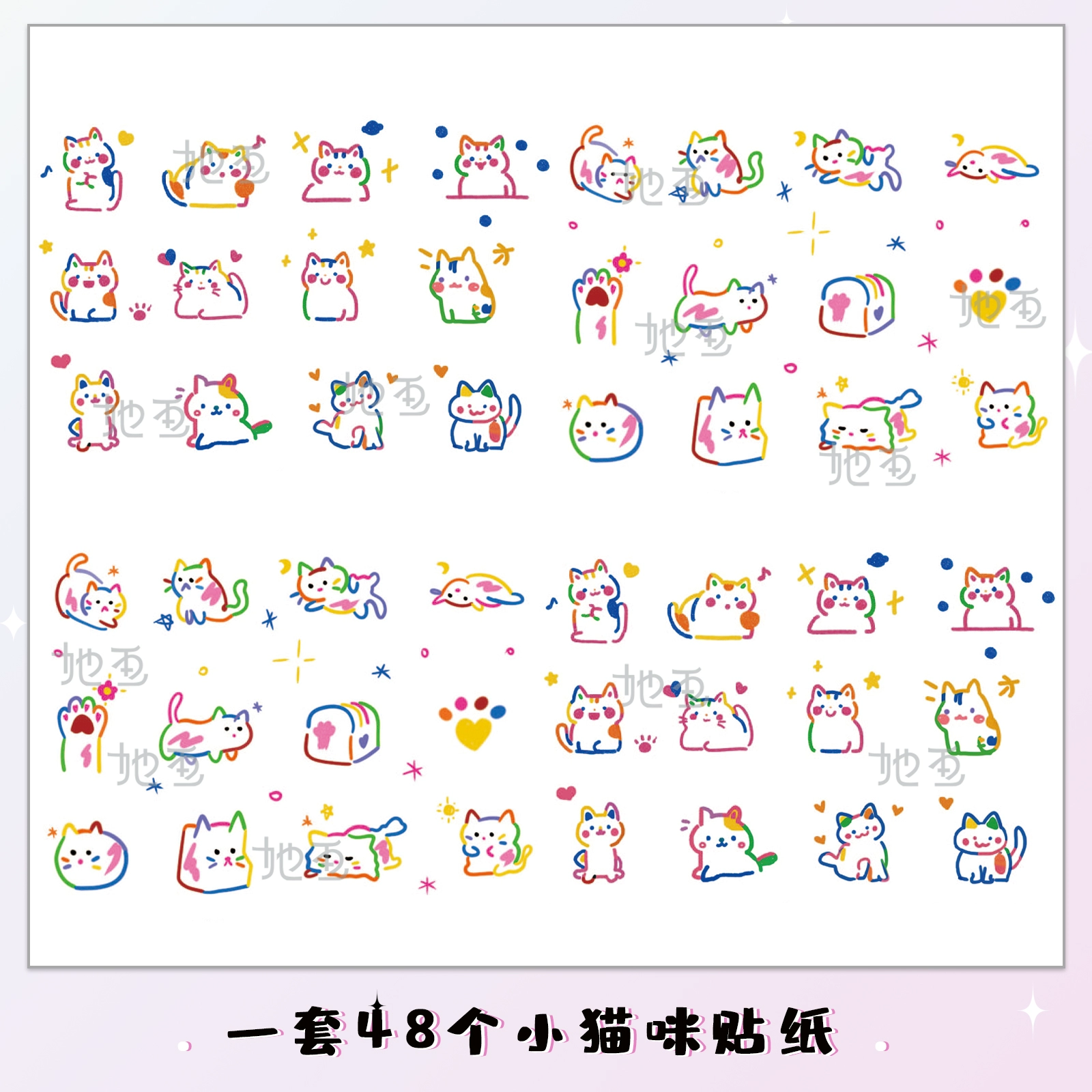 She draws a cat colorful small fresh wrist tattoo sticker
