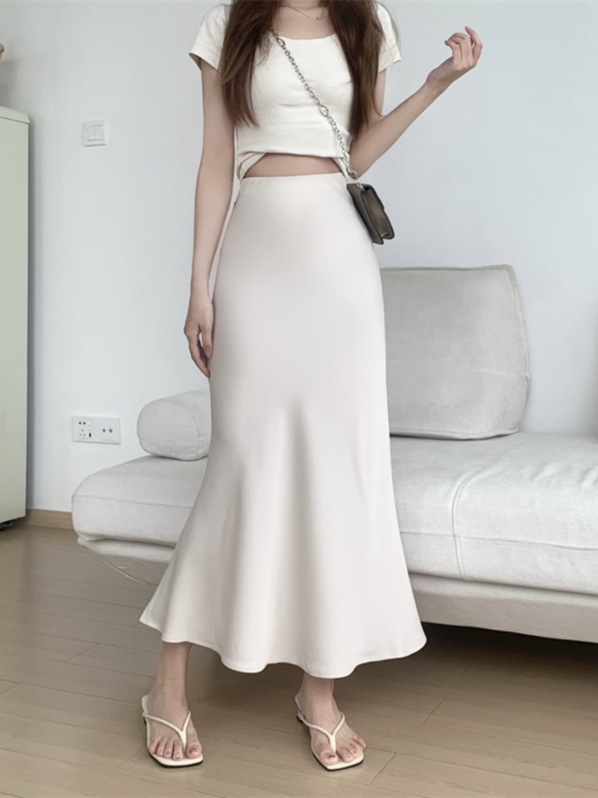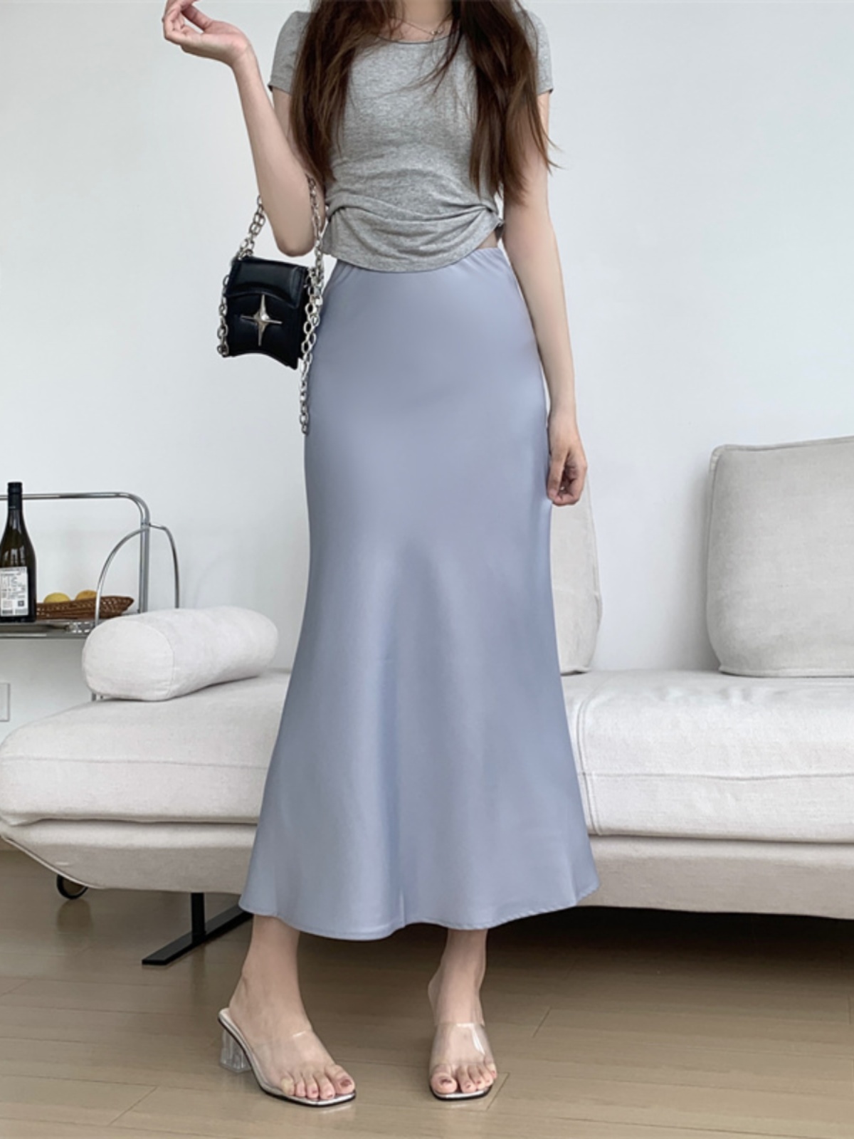 Sheath Fishtail Skirt Long Skirt Women's 2024 Summer New Style Skirt Small Acetic Satin High Waist Slimming Skirt