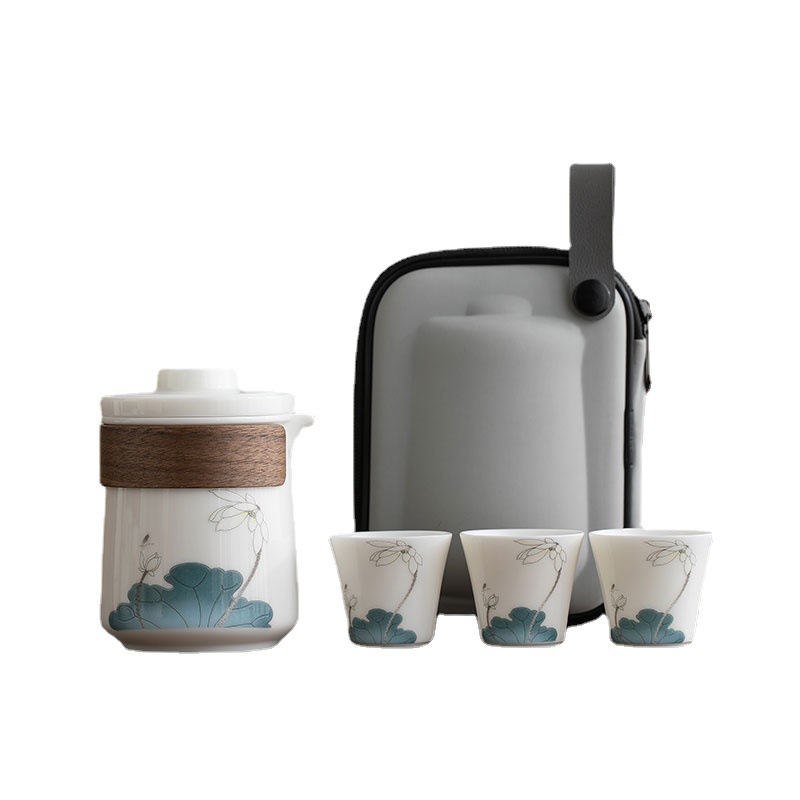 Sheep Fat Jade Travel Tea Set Express Cup Portable Outdoor Single Teapot Ceramic Kung Fu Pot Three Cups
