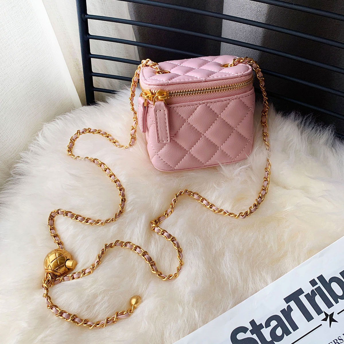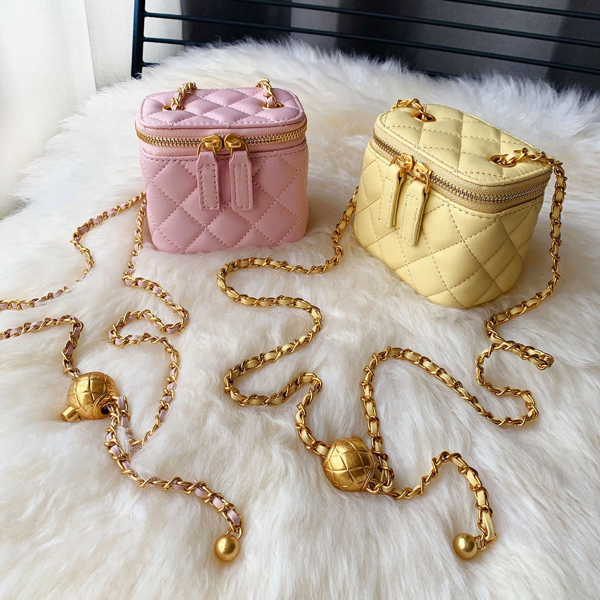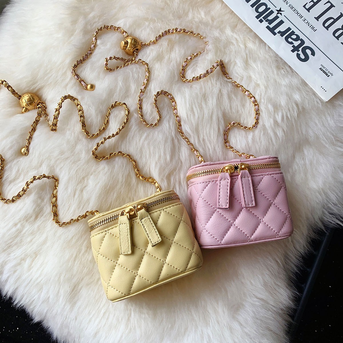 Sheepskin Chanel style golden ball box bag Chanel rhombus mini chain bag shoulder crossbody lipstick small waste bag