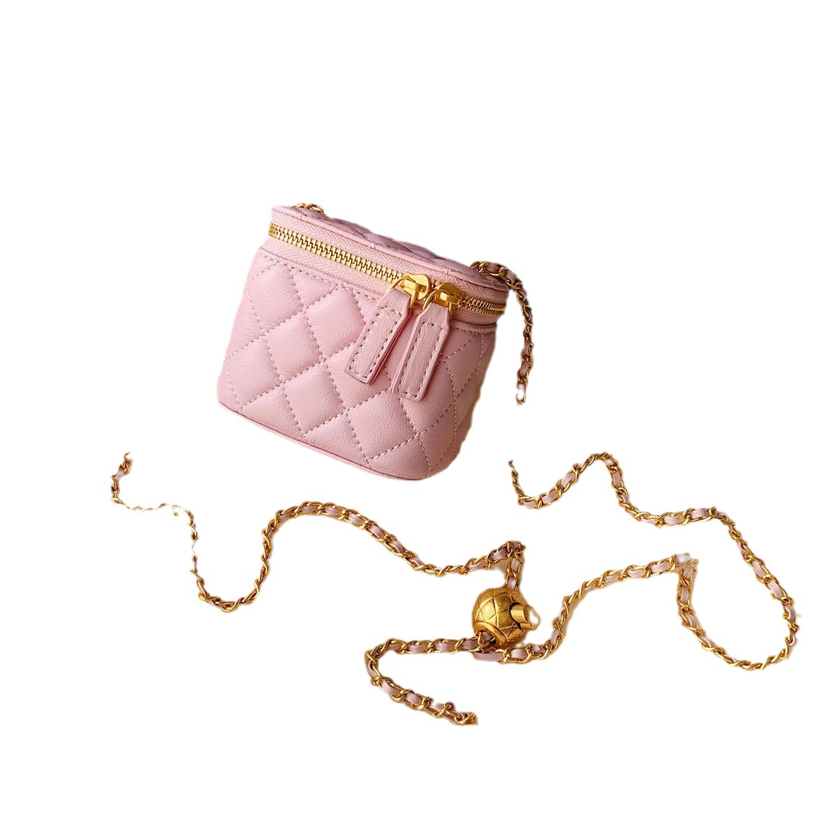 حقيبة شانيل من جلد الغنم على شكل صندوق كروي ذهبي من شانيل المعين بسلسلة صغيرة حقيبة كتف عبر الجسم أحمر الشفاه حقيبة نفايات صغيرة